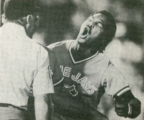 George Bell took his hot-tempered act to Chicago after his time with the Jays. Here he freaks out over an Aaron Sele high fastball and gets leveled by Mo Vaughn.