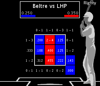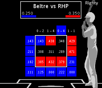 - Avoid: Strike Zone. Really, Beltre has a crazy split. In Zone: .345/.344/594, wOBA .391