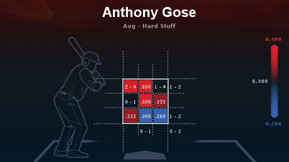 As always, data is limited and sample size rears its ugly head. Still, using both standard stats and heat maps it’s easy to see that Gose needs time to adjust learn to hit off-speed pitches.