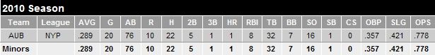 Torontonian Marcus Knecht has made a smooth transition from the Intercounty Baseball League to the New York Penn League in this his first season of pro ball. Interesting to note is that Knecht has only been playing DH. Either his OF defense is so far advanced that the organization is just concentrating on the development of his hitting or he is all bat and no glove. It is something to keep an eye on.