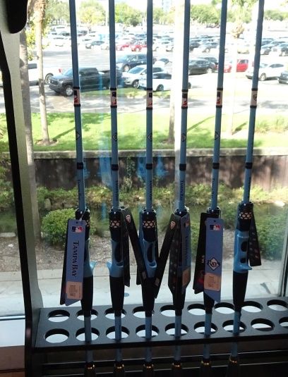 While it certainly doesn’t compare to the corporate juggernaut that is the Blue Jays team store, the Rays team store has a wide variety of clothing, souvenirs, novelties, and knick-knacks. The original Tampa uniforms are well represented here (I don’t remember that much purple!), and there are more options for hats than you could dream of, including a wide selection of minor league affiliates. If you want, you can even buy a Tampa Bay Rays-branded fishing rod: