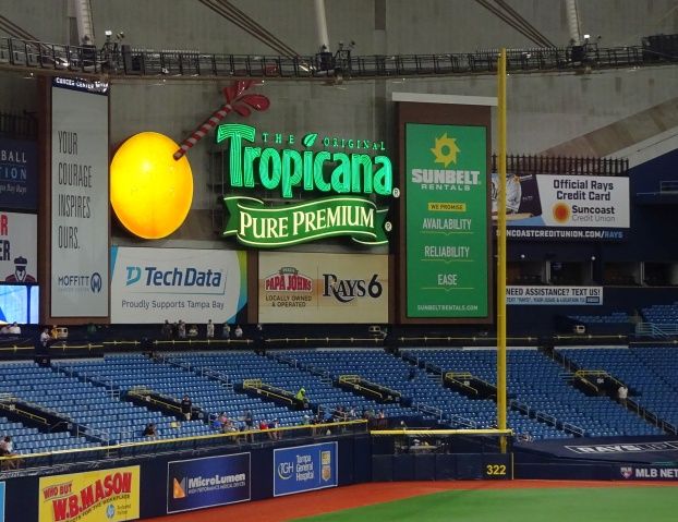 While it pales in comparison to the Miami Marlins’ home run feature, Tropicana has one of its own. Over the right-field fence is a wall-mounted neon Tropicana logo. When a home run is hit, the orange lights up and the straw progressively gets brighter until orange juice shoots out the end. It’s a little something to keep the dirty-minded degenerate adults in the crowd engaged.