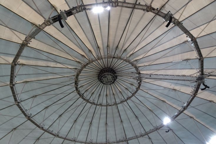 The roof is supported by a system of cables and arches, with four support rings with lights and catwalks attached. The two inner catwalks are in play, meaning the ball is still live even if it caroms off one of them. If a ball hits one of the two outer catwalks, it is considered a home run. From my perspective in the seats looking up, it’s an absolute mess. I can now truly appreciate the difficulty that MLB players have in tracking flyballs against a ceiling that is roughly the same colour as the baseball.
